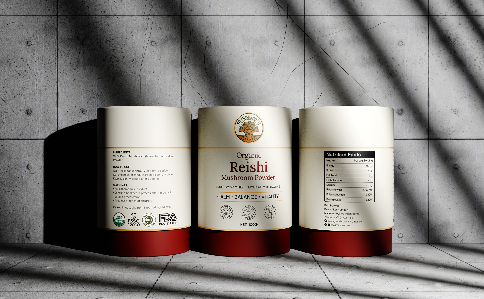 - 100% organic Reishi (Ganoderma lucidum) fruiting body